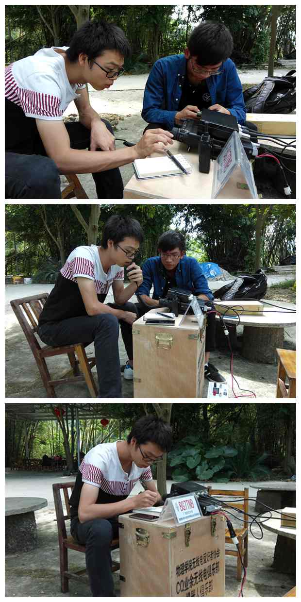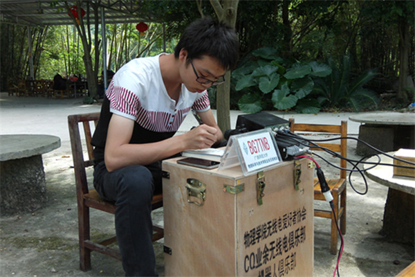 准备就绪后,老师(BG7TCM)指导同学们将电台调试到业余电台专用频率、模式及功率上,电波作为媒介穿越万水千山:“CQ CQ CQ, This is BG7TNB, BG7TNB, BG7TNB,calling CQ and standing by......”随着俱乐部“火腿”BG7TOB(2013级测控陈钻立)、BG7TOL(2013级物理李阶鑫)等轮流通联操作,俱乐部实现了一场与全国同一频率上的火腿们的空中聚会,同学们十分兴奋,欢呼雀跃。“火腿”英文名HAM,是全球热爱业余无线电通联并获取国际业余无线电联盟承认的业余电台操作证的业余无线电爱好者的“绰号”。