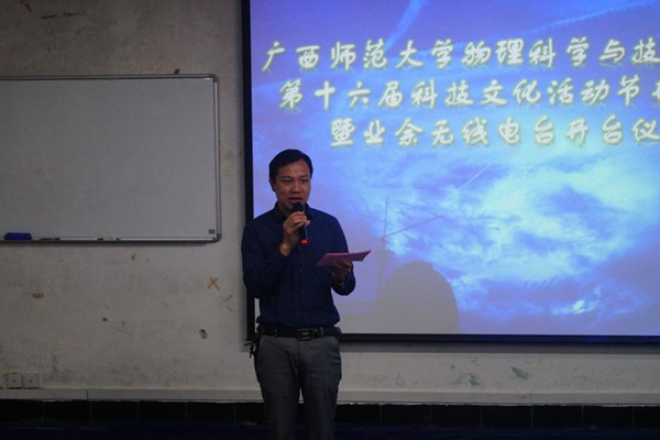 为了响应学校“第二课堂”的号召,营造我院科技学术氛围,培养同学们的创新意识和协作能力,4月16日上午,胜游体育(SYsports)官方网站入口与技术学院第十六届科技文化节活动开幕式暨胜游体育(SYsports)官方网站入口与技术学院业余无线电台开台仪式在物理实验楼一楼报告厅隆重举行。学院相关领导、桂林市无线电运动协会代表、物理学院及兄弟学院相关指导老师和学生代表等五十余人出席了本次开幕仪式。学院相关负责人致开幕词,桂林市无线电运动协会秘书长黄刚老师宣布电台开台。