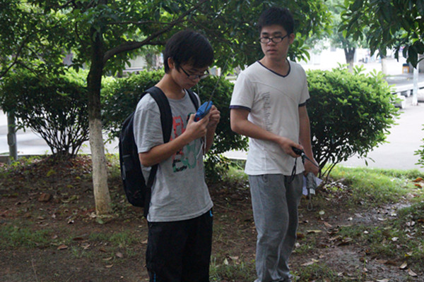 本次比赛结合了物理学院广西高校首个无线电台的成立,是第十六届科技文化活动节新增的子项目。无线电测向运动是现代无线电通讯技术与传统捉迷藏游戏的结合,参赛者两人一组,手持无线电测向机,测出赛前隐藏好的电台发出的电报信号的方向,并采用徒步的方式在规定时间内逐个寻找出电台。