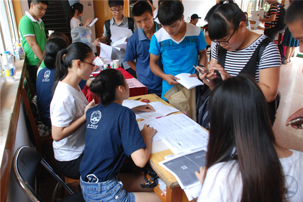 若一定要问我们的名字,我们都有同样的身份――不仅是志愿者,更是物院学子:在学院大厅的志愿者仔细审核新生录取通知书等重要材料,并向新生细心讲解需要注意的细节;流动点的志愿者负责到不同的校门引领新生完成报到,他们或介绍物院情况,或及时有效的答疑解惑;桂林各大车站还有志愿者接应外地新生,并帮助其拿行李物品……学院无微不至、热情周到的服务消除了新生们初来乍到的陌生感,他们青春的脸庞上洋溢着兴奋和自信,写满了对未来大学生活的无限憧憬。