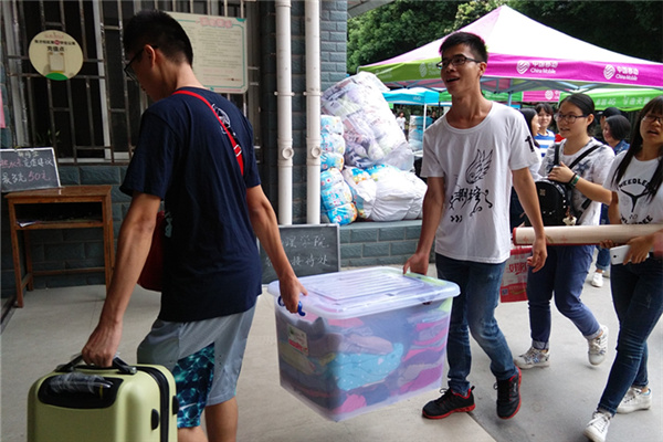 物理学院教师和各年级的迎新志愿者们早早的在迎新点等待着新生们的到来。车站、校园内穿着统一服装、顶着烈日的物院志愿者们随处可见。他们全天轮流上岗,责任到人、严谨周全、相互协作,做到新生无论何时到校都能安全、方便的报到和住宿,为注册工作做了充分的准备。