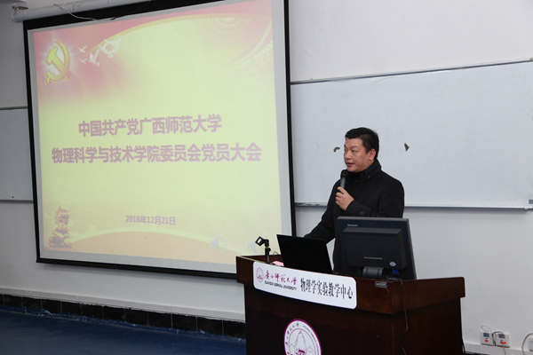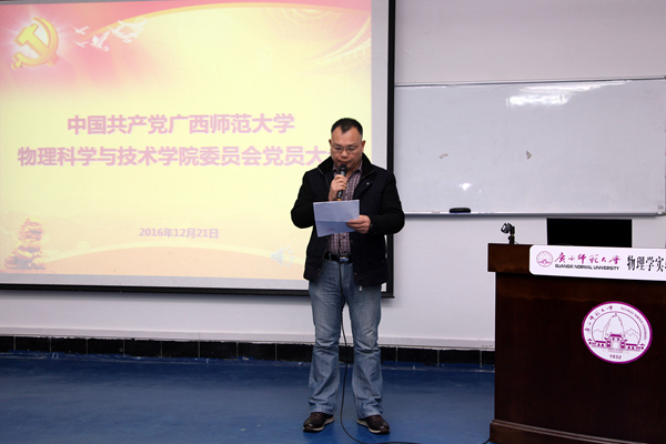 根据校党委对全校基层党组织换届选举工作的要求和学院党委换届选举工作的安排和部署,12月21日下午,中国共产党胜游体育(SYsports)官方网站入口委员会在物理实验楼一楼阶梯教室召开党员大会,进行学院党委和纪委换届选举。全院共93名师生党员参加了大会。会议由学院党委副书记黄权标同志主持。