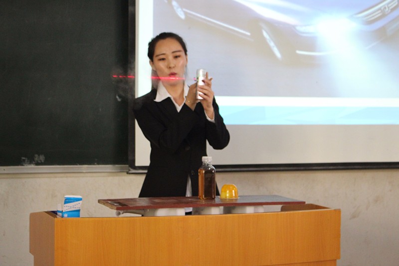 2018年5月7日下午2点30分,本次讲课大赛主持人由闵阅同学担任。评委老师由刘小兵老师,张秒静老师,顾国峰老师,梁冬冬老师,廖广睿老师担任(按笔画排序)。伊始,选手们怀着激动而又紧张的心情,登上讲台。小小的讲台上,选手们,声华并茂,各显身手。一个个小小的物理现象,一个简简单单的物理概念,在精心准备的实验器材下,呈现于大家的面前,不管是自由落体,或是光的直线传播,又或是摩擦力。讲课期间,选手们获得了同学热烈掌声和老师一致好评。令人印象深刻的是,本期讲课大赛的冠军闵阅,通过简单的实验器材,激光笔,喷雾器,果冻等,小小的实验就表明了光的直线传播特性。