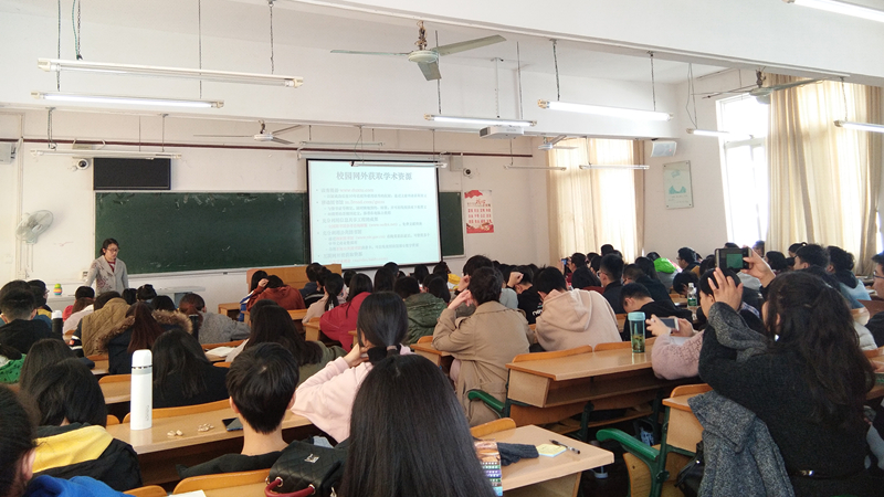 为深入贯彻《广西师范大学学风建设与文明修身行动实施方案(2018-2020年)》,加强学术指导和道德规范,胜游体育(SYsports)官方网站入口与技术学院于11月27日上午在育才校区数学楼303教室举办毕业论文资料查找辅导讲座。本次讲座由我校图书馆工作人员郑丽霞老师主讲,170余名2015级本科生参加了此次学习。