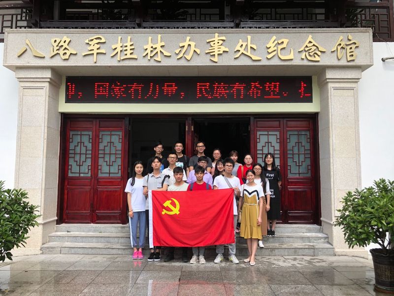 一路上大家思绪万千,每个人都迫不及待地想立刻身临其境,去体会这个蕴涵着深刻意义和特殊历史底蕴的“红色桂林城”,去聆听抗日战争时期八路军桂林办事处在短暂的战斗岁月里,克服一切困难胜利完成其历史使命,为中华民族解放事业做出卓越而特殊贡献的历史故事。在讲解员的引导下,大家都怀着无比崇敬而激昂的心情参观了纪念馆,一幅幅照片如同一架时空穿梭机,带我们追忆抗战时期桂林城的那段峥嵘岁月。一件件历史遗物将历史画卷重新铺展在我们面前,仿佛又把大家带回到那段短暂而又波澜壮阔的历史洪流当中。通过展厅里的一系列实物可以看出,当时桂林城战争的激烈与残酷、百姓生活流离失所以及八路军战士们生活条件的艰苦。全体党员同志们感受到了八路军战士们为了抗日战争的胜利不怕困难、不怕牺牲的大无畏精神,同时也唤起了学生党员对革命先烈们的崇敬之情并加深了大家对于中国革命历史的认识和理解。
