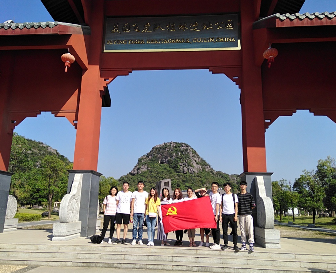 9月22日上午,研究生第一、第二党支部举行“不忘初心、牢记使命”主题教育暨庆祝中华人民共和国成立70周年主题党日活动,研究生党支部全体党员赴美国飞虎队桂林遗址公园进行了参观学习,勿忘国耻,振兴中华,致敬飞虎英雄。