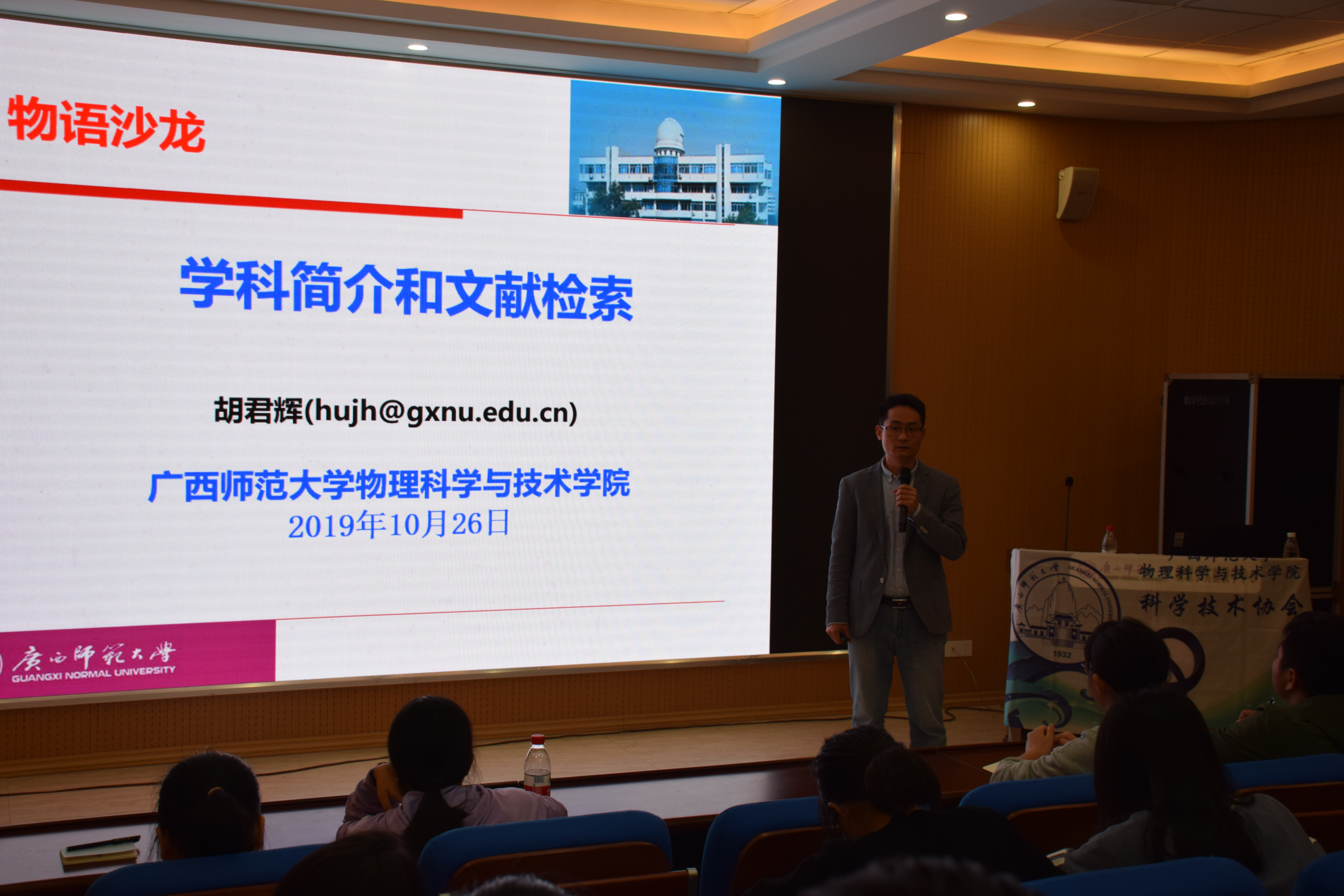 为引导学生勇于尝试,培养一批有梦想、有潜力的学术科技人才,10月26日,胜游体育(SYsports)官方网站入口与技术学院(以下简称“物理学院”)科学技术协会在物理实验楼阶梯教室开展物语沙龙系列讲座,此次活动邀请物理学院胡君辉教授担任主讲人。