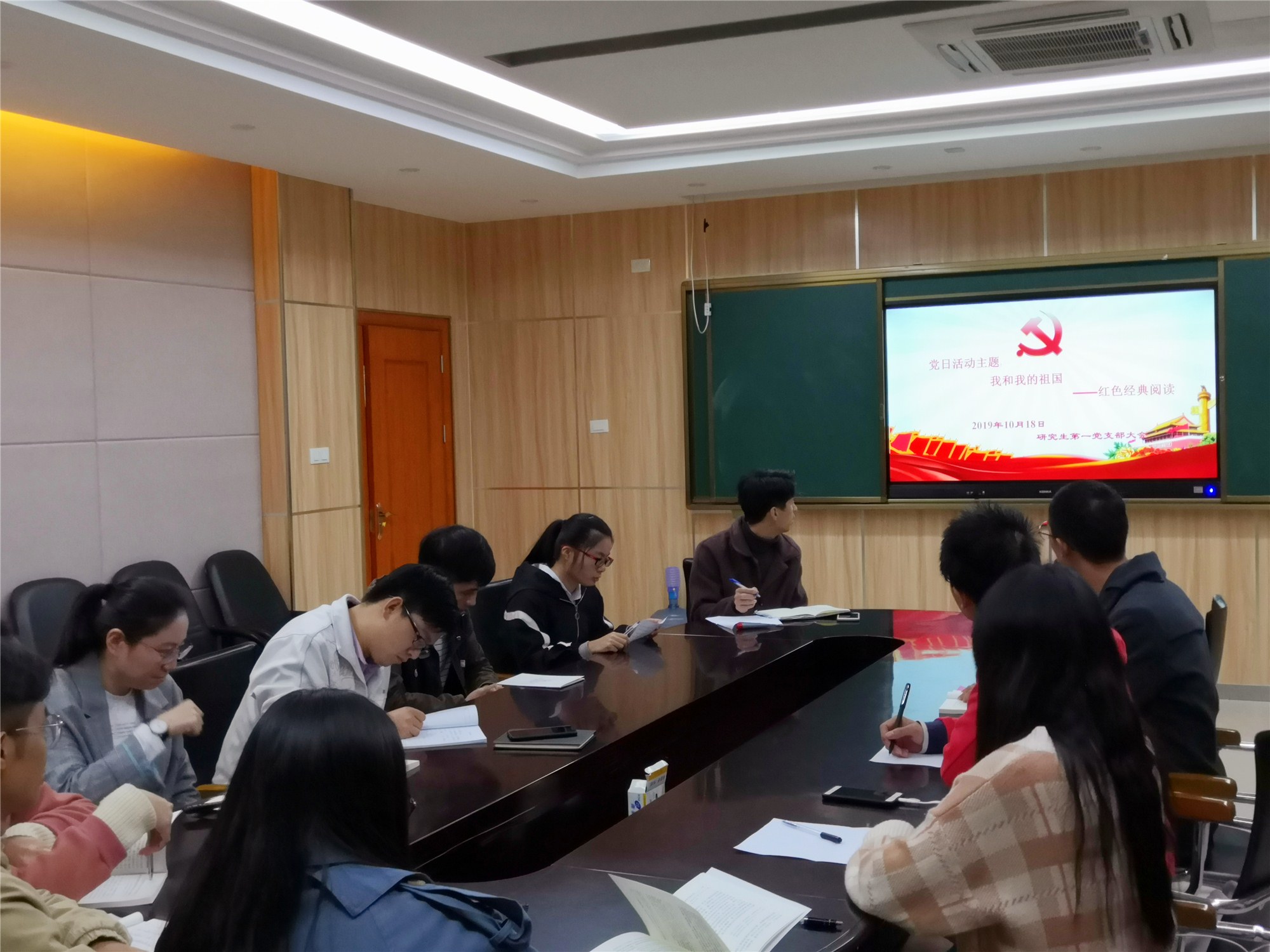 10月18日晚,胜游体育(SYsports)官方网站入口与技术学院研究生第一党支部在物理学院办公楼105会议室,开展“我和我的祖国”主题党日活动。会议由研究生第一党支部书记杨兴主持,研究生第一党支部全体党员参加会议。
