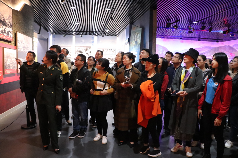 85年前,为确保中共中央和中央红军主力渡过湘江,数以万计的红军将士血染湘江,书写了红军长征伟大史诗中最壮烈的一页,树立了一座光照千秋的革命丰碑。在讲解员的带领下,大家走进纪念馆,一副“号角洪亮,英勇战士们全然不顾飞机的轰鸣、炸弹叫嚣、奋勇前进”的浮雕便映入眼帘。紧接着,二楼全景室模拟战场的现场再现,使一场场硬仗重现眼前,战士们挥舞着大刀厮杀搏斗,小米步枪不甘示弱朝着轰隆隆的飞机大炮咆哮着。还有陈列架上摆放着的枪支、兵器、收报机、五星手雷等,无一不诉说着那段历史的艰辛不易。大家深刻地感受到先烈们为中国革命胜利所展现出的“为苏维埃流尽最后一滴血”的牺牲精神,切实体会先烈们不屈不挠、不畏牺牲的长征精神,受到了一场深刻精神洗礼。