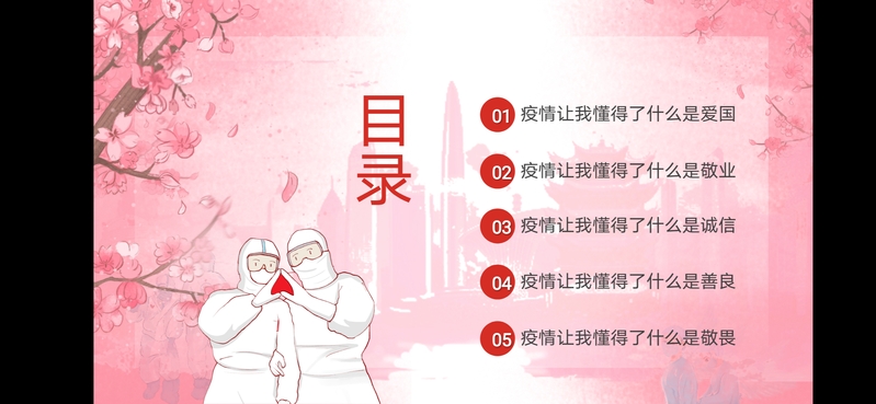 在随后的疫情防控主题教育工作会议中,研究生辅导员分别从爱国、敬业、诚信、善良、敬畏自然等五个方面展开分析,带领同学们深入了解此次疫情防控过程中涌现的先进典型、英雄人物和感人事迹。面对这场突如其来的疫情,10天建成的“火神山医院”,即刻复工30多家口罩企业,无数医务工作者、武警官兵和党员干部支援武汉,让我们看到了祖国母亲的强大;自发开展捐助活动的海外华人和留学生,以及收入不高却愿意捐出自己存款的无名人士,都展现出全国人民万众一心,共同抗疫,一方有难八方支援的伟大民族精神。