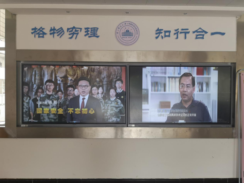 物理学院大厅播放国家安全公益宣传片和反谍案件视频