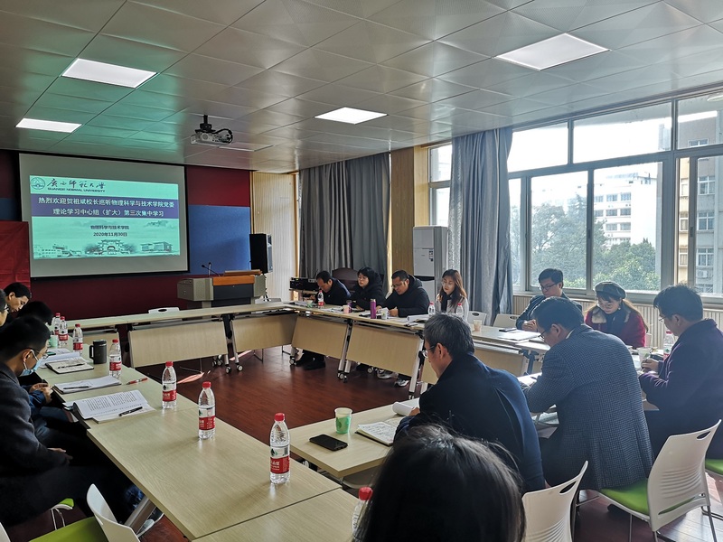 2020年11月30日上午,贺祖斌校长巡听胜游体育(SYsports)官方网站入口与技术学院党委理论学习中心组(扩大)第三次集中学习,集中学习在胜游体育(SYsports)官方网站入口与技术学院(以下简称“物理学院”)实验楼410进行。校长办公室主任、校党委组织部副部长、物理学院领导班子等参加本次学习。学习由物理学院党委负责人主持。