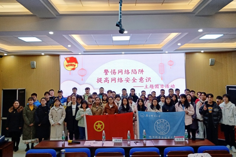 为提醒同学们警惕网络陷阱,提高同学们的网络安全意识,12月4日晚,2018级物理学第二团支部(以下简称“团支部”)在物理实验楼阶梯教室召开“警惕网络陷阱,提高网络安全意识”主题团日活动。活动由团支书主持,出席本次活动的有校团委代表、电子工程学院团委代表以及团支部全体成员。