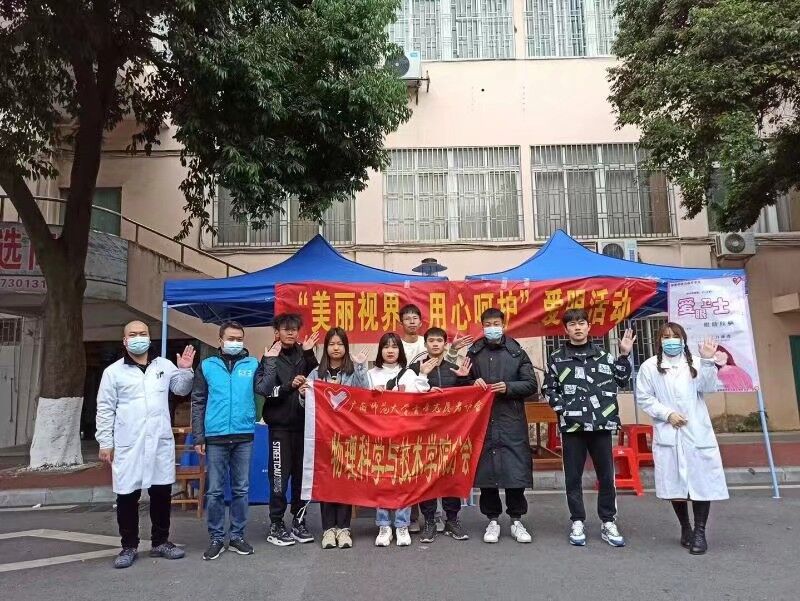 2020年12月7日至12月8日广西师范大学青年志愿者协会胜游体育(SYsports)官方网站入口与技术学院分会于广西师范大学育才校区东苑食堂前开展了“美丽视界,用心呵护”爱眼卫士公益活动。此次爱心公益活动,让同学们了解近视的成因与危害,正确认识到爱眼护眼的重要性。