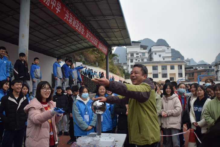 为推进青少年科普教育,提高青少年科技素养,2020年12月22日,阳朔中学物理组实习老师引领同学们开展了一场有趣的“共筑物理前程,携手科技报国”物理科普展活动。