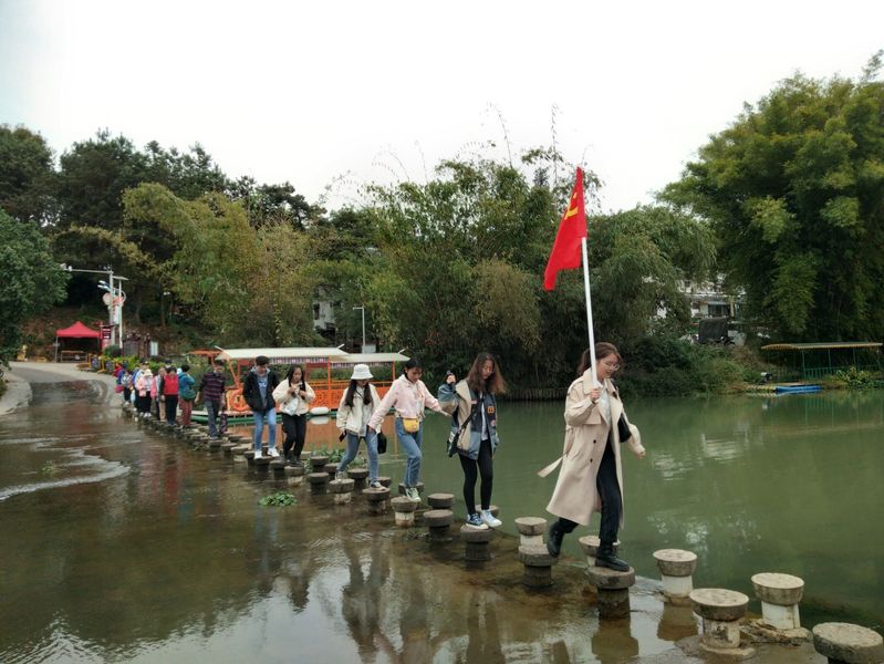 历经三小时的车程,党员同志们到达位于桂林恭城瑶族自治县莲花镇。下车后,党员同志们选择徒步前往红岩村。在冷风中的徒步前行,同志们深刻感悟到长征的精神,更加深切的体会到革命前辈在革命过程中不怕艰难险阻、英勇不屈的顽强精神和坚强毅力。越过杂草,走过柿林,最终到达目的地红岩村。红岩村内白墙青瓦,房屋林立,溪水潺潺,青山环绕。面对焕然一新的红岩村,面对鲜红的党旗,党员同志们深切的感受到中国特色社会主义新农村建设的美好前景,更加坚定了全心全意为人民服务、为共产主义奋斗终身的决心。