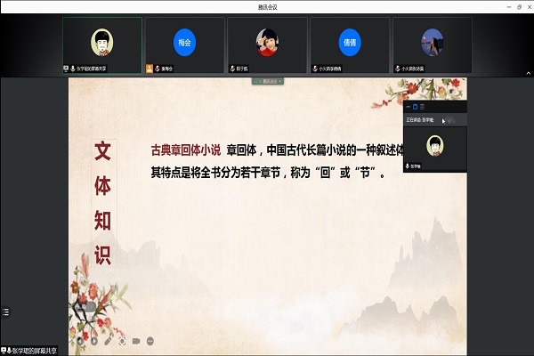 当日上午,志愿者给孩子们上了一节经典名著导读课,孩子们今天很积极,在上课前10分钟之前就有5位同学进入会议等待老师上课了;孩子们在上课之前也已经把发放的讲义给预习了、标好了段落、查字典记录一些不认识的生字。志愿者给孩子们听了一首歌——葬花吟,来营造一种使孩子们们进入红楼梦的氛围。先用三句话来强调多读课外书的重要性,并且建议孩子们多读书,读好书,好读书。接着志愿者用一个小品来引入课堂-刘姥姥进大观园,在课堂中志愿者给孩子们讲解了一些文体知识并对课文进行了解读,孩子们对红楼梦中的一些人物的性格有了一定了解。最后,志愿者用经典的87年红楼梦中的刘姥姥进大观园视频结束课堂。孩子们在志愿者的介绍下,对红楼梦产生了很大的兴趣,说:“我一定要把红楼梦给看完,里面的故事很有趣,特别吸引我。”