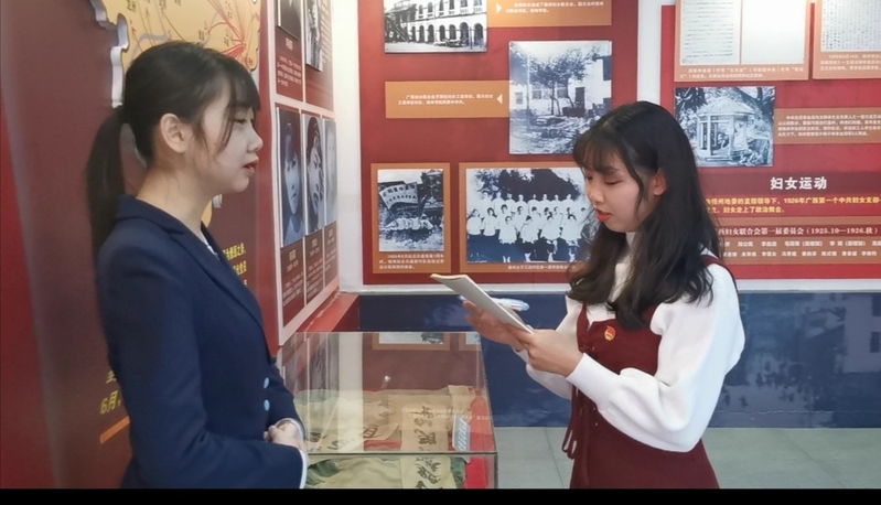 5日上午,“红色梧湘”团队前往“中共梧州地委、广西特委旧址”进行实地调研。中共梧州支部(现简称“中共梧州地委”)是中国共产党在梧州建立第一个支部。团队成员了解到梧州革命运动、建党工作的一些概况和广西共产党员、共青团员的生平事迹等。随后,团队成员对讲解员进行采访,对于“中共梧州地委”参观者中的青少年群体,讲解员谈到平日主要是工作单位党员、学校组织的学生团体会过来参观,一年接待5~6万左右的人中,中小学生人数大概是5~6千人。团队发现,前往“中共梧州地委”实地学习的青少年群体并不多,其原因可能有广西或梧州红色旅游资源点多;“中共梧州地委”在街边,与一些纪念公园相比不占优势等等。随后,团队成员实地采访了展览馆内的两名高一学生,采访得知,中学已经把一些红色书籍列入中考必考书目,这对青少年红色文化的学习有较大的推动作用,体现了学校对红色文化学习的重视。此外两名高一学生表示对红色文化的影视、实地观察学习方式兴趣较浓,这引起了团队成员对影视学习、线下红色文化学习模式的思考。