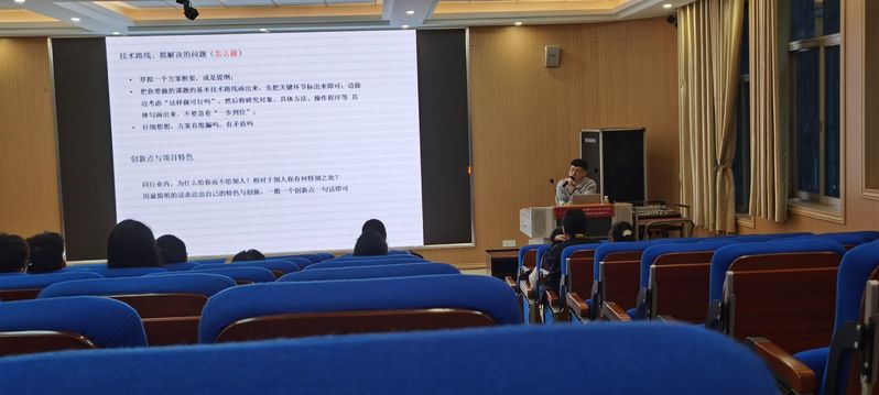 本次讲座的主题是“如何撰写项目申报书”。朱老师以“为什么要撰写项目申报书”为开头,结合实际,简述了撰写项目申报书的现实意义,随后,讲述了撰写项目申报书的基本过程以及注意事项。大学生撰写项目申报书该如何选题?朱老师说:应立足于本身的专业基础和前期研发工作,确定项目及研究内容,并围绕其内容深刻思考一段时间,要有基础,避免“白手起家”。朱老师还指出,项目简介非常重要,要对本申报书内容的高度概括,要让人看过此处后,便知道本项目要做什么,特别是字数,字数要接近要求字数,但不能超过。随后,朱老师还强调了项目书应具备的创新点与特色,简单来说,就是同行业内,为什么给你而不给别人?相对于别人你有何特别之处?并且创新点在精而不在多,切忌长篇大论。