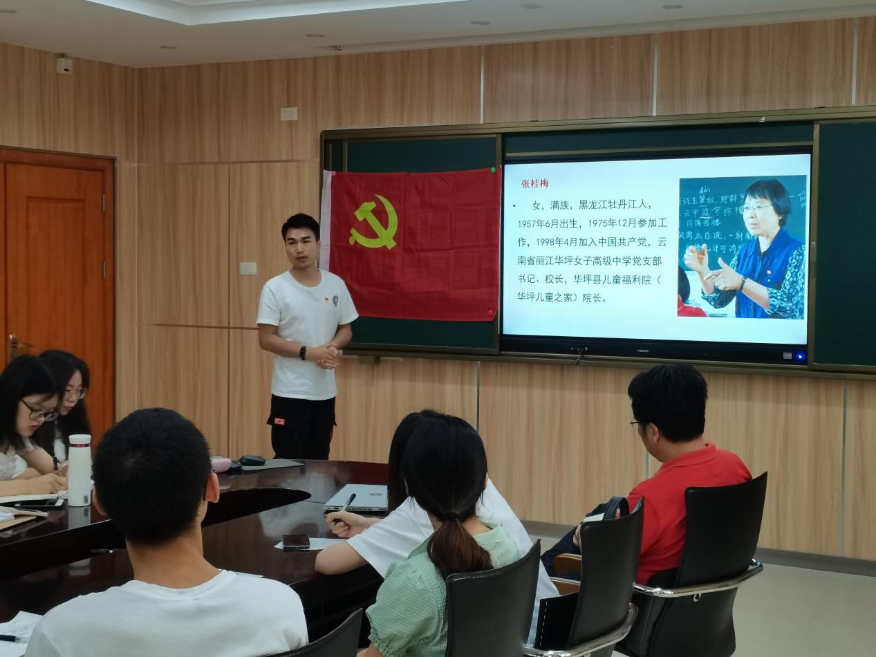 在活动中,黄万华书记分享了“在学史崇德中提升精神境界”的理论文章,他详实、生动地介绍了“学史崇德”的内涵及意义,呼吁党员同志要在党史学习中感悟并崇尚老一辈革命家严于修身律己、自觉接受监督约束、严格家教家风的伟大品格,自觉把个人追求和人生价值体现在为党和人民事业奋斗之中。紧接着,研究生第三党支部的三个小组代表轮流分享了党员先锋事迹,从三位同志的分享中,同志们学习到了南仁东同志的锲而不舍、执着追求的精神,陈立群同志爱岗敬业、热爱学生的品质以及时代楷模张桂梅同志的不畏艰难、甘于奉献、热爱教育事业的高尚品德。之后,党员同志轮流分享了自己的感想与心得,纷纷表示要在今后的学习、工作中要全心全意为人民服务,发挥党员的先锋模范带头作用。最后,在黄书记的带领下,全体党员同志重温了入党誓词。