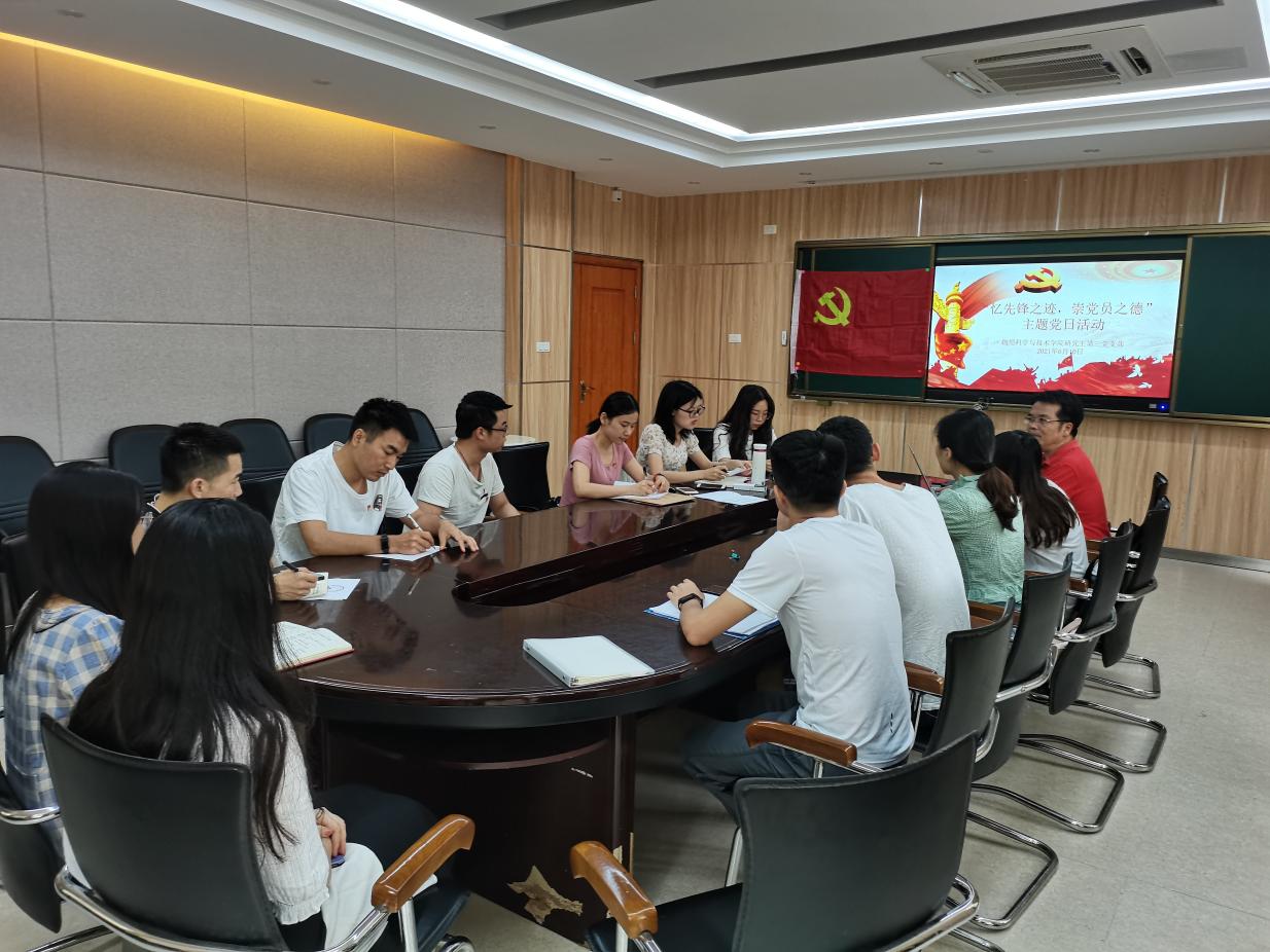 为认真学习贯彻习近平总书记在党史学习教育动员大会上的重要讲话精神, 扎实推进党史学习教育,全面把握习近平总书记在党史学习教育动员大会上提出的“学史明理、学史增信、学史崇德、学史力行”要求。胜游体育(SYsports)官方网站入口与技术学院研究生第三党支部于6月10日下午在物理学院105会议室开展了“忆先锋之迹,崇党员之德”主题党日活动。参与此次活动的人员有,物理学院党委书记黄万华同志,研究生第三党支部在校的党员同志。