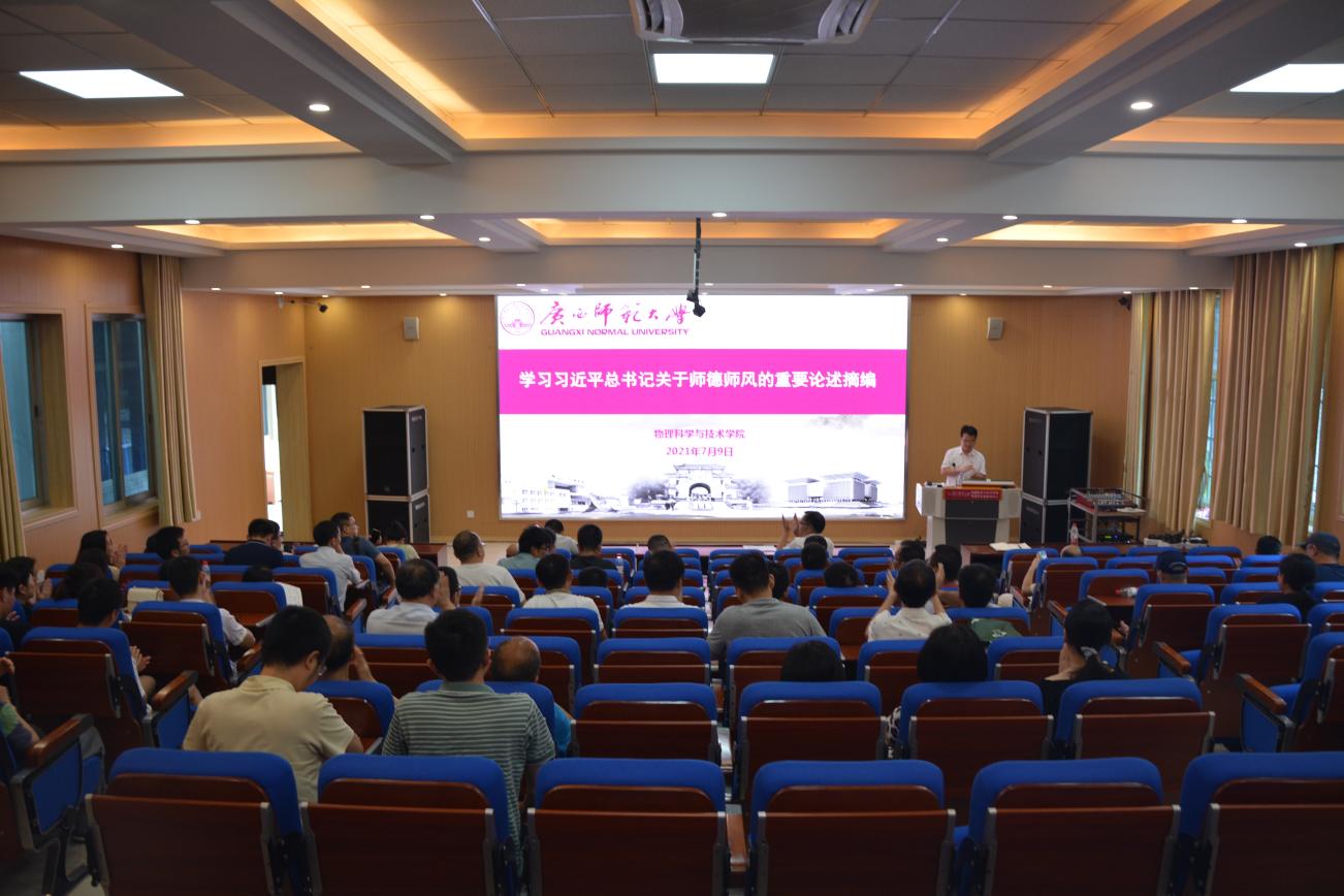 为进一步帮助教师职工牢固树立中国特色社会主义理想信念,带头践行社会主义核心价值观,自觉增强立德树人、教书育人的荣誉感和责任感,学为人师,行为世范,做学生健康成长的指导者和引路人,2021年7月9日上午,胜游体育(SYsports)官方网站入口与技术学院组织全体教师职工于学院实验楼阶梯教室学习习近平总书记关于师德师风的重要论述摘编。学院党委、行政主要负责人和领导班子成员出席会议。