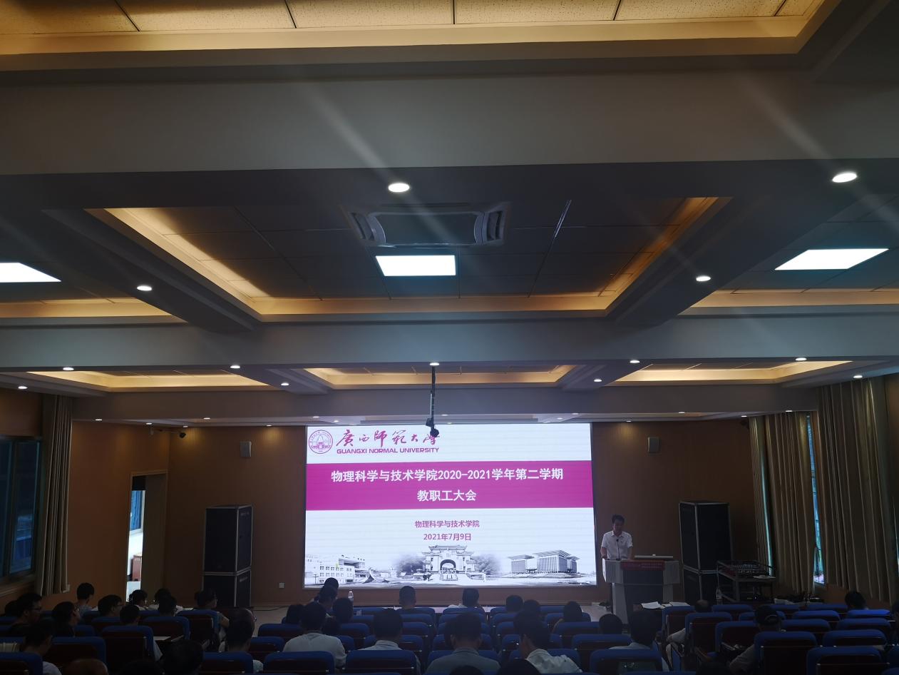 会议首先由学院行政负责人对学院的本科教学、研究生教学、学科建设、实验室建设、学生实习、行政工作、学生工作等方面的工作进行总结。他指出,学院师德师风建设需要常抓不懈,全体教师职工要进一步提高教学业务能力和科研能力,争做人民满意的好老师。他指出,全体教师职工要继续加强和推进党史学习教育走深走实,从百年党史中汲取智慧和力量以高质量党建努力推动学院高质量发展。