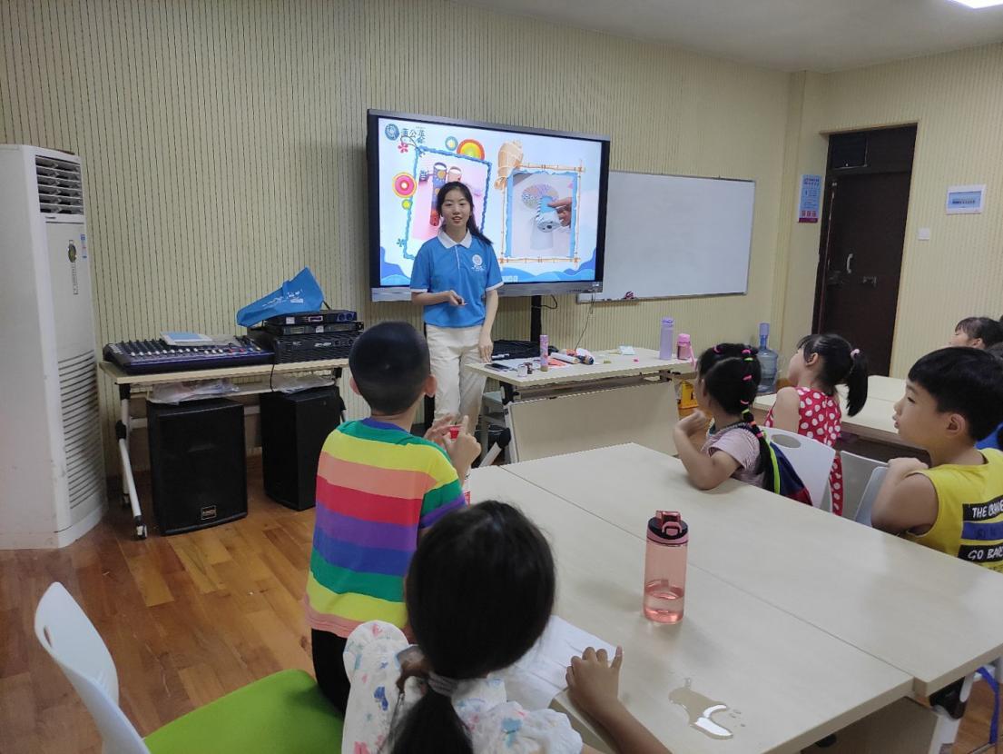 志愿者先是与小朋友们探究在生活中常见的镜子的特点,又举例对比波浪的水面和哈哈镜,得出什么是平面镜以及平面镜的特点及平面镜成像,后提出了对称的概念,并初步的了解有关对称的知识点。除此以外,志愿者也引导了他们一起去探究为什么眼睛可以看到身边的物体,让学生初步了解光的反射以及光是如何反射。在课堂知识点学习的最后,志愿者带领其将以上所学习的知识点回归并运用到“万花筒”中,得出“万花筒”的光是多次反射的原理。