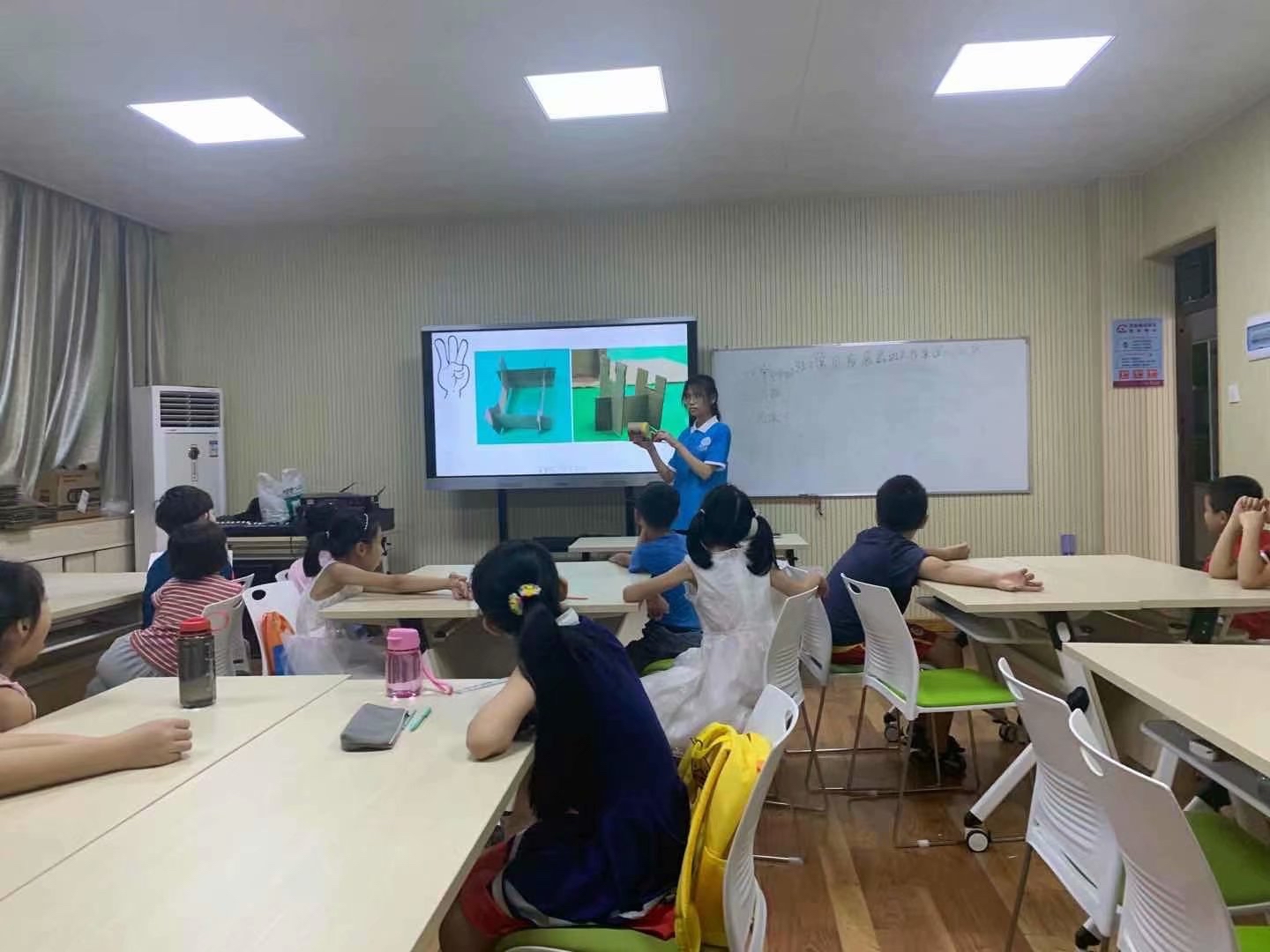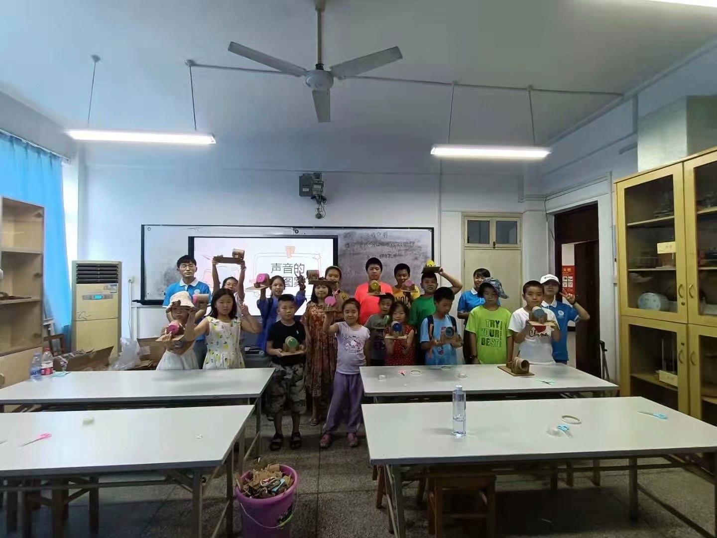 最后在主讲老师和助教老师的引导下,所有的小朋友都做出了一个独属于自己的小作品。大家一起合影留念,记下这一美好的学习时刻。