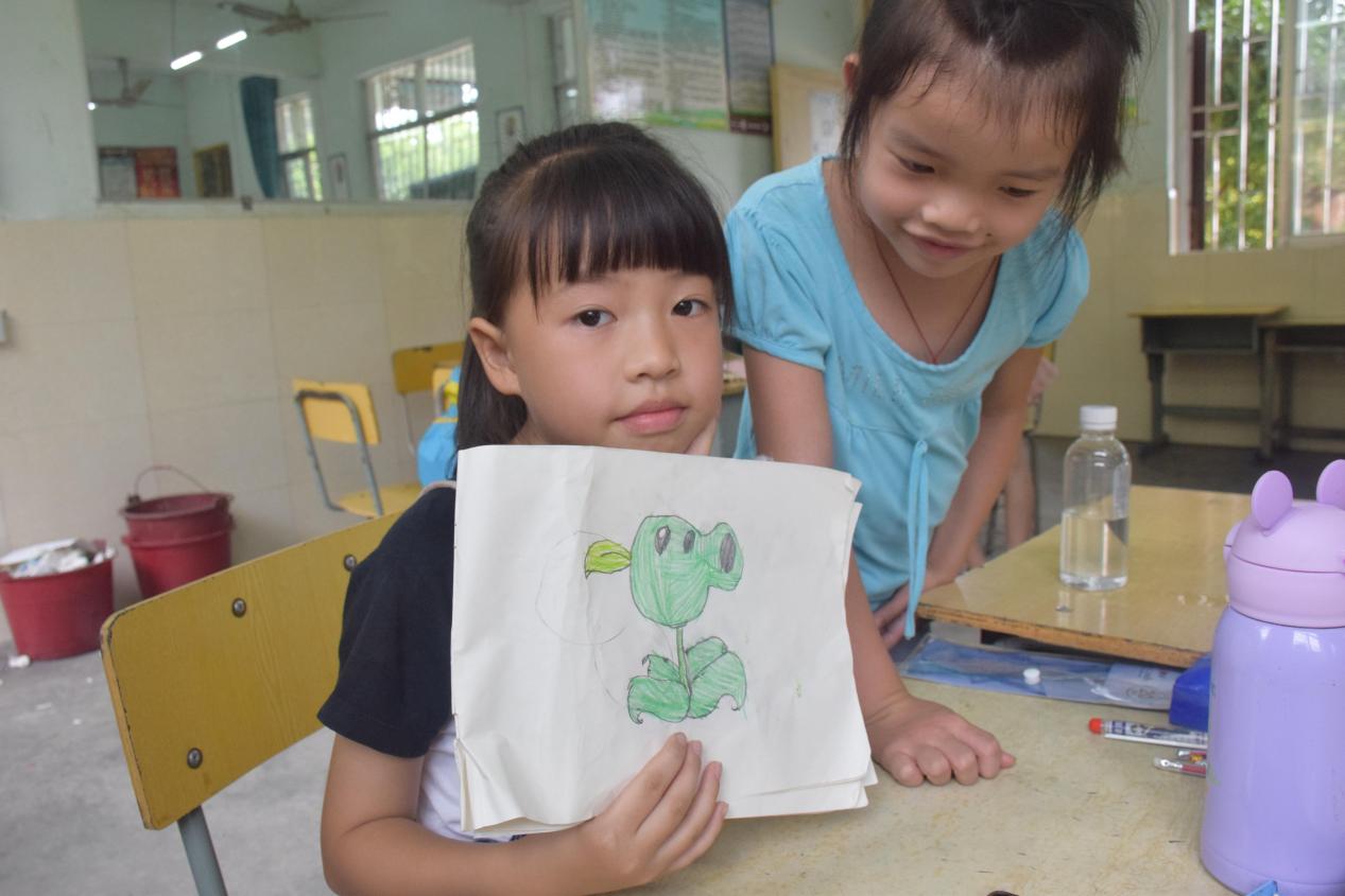 在美术课上,志愿者首先给孩子们欣赏了一些美术作品,接着给孩子们讲述了临摹的步骤与要点,并现场示范。在临摹的过程中,孩子们静下心来,认认真真地完成志愿者布置的课堂小任务。在课上,孩子们不仅学到了绘画技巧,还学会了如何调整自己的情绪以及只有专心才能把事情办好的道理。