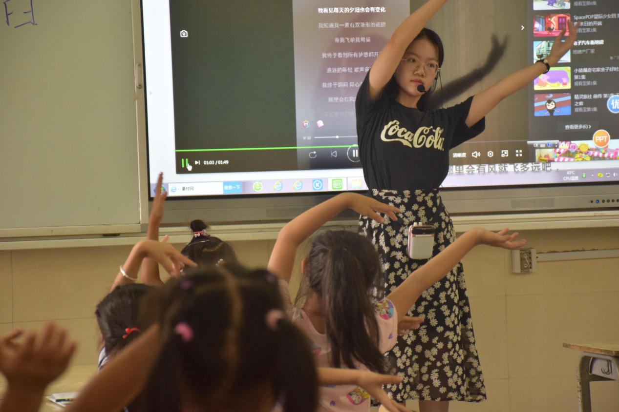 广西师范大学青年志愿者协会物理分会云峰支教团队于2021年7月10日入驻灵川县海洋乡中心校,于7月13日正式开课。今天是2021云峰暑期科普夏令营支教开课的第十天,也是最后一天,志愿者仍然以饱满的热情为孩子们精心准备了课程,力求给孩子们留下最好的印象,最特别的记忆。孩子们知道志愿者们第二天就要离开了,表现得格外的乖,还给老师们准备了小礼物,这些天来的一点一滴都融在了里面。爱是相互的,公益是不会孤单的。图为孩子们在上舞蹈课,志愿者教他们跳简单的《隐形的翅膀》,孩子们很配合老师,认真地在学习。 杨金婷摄