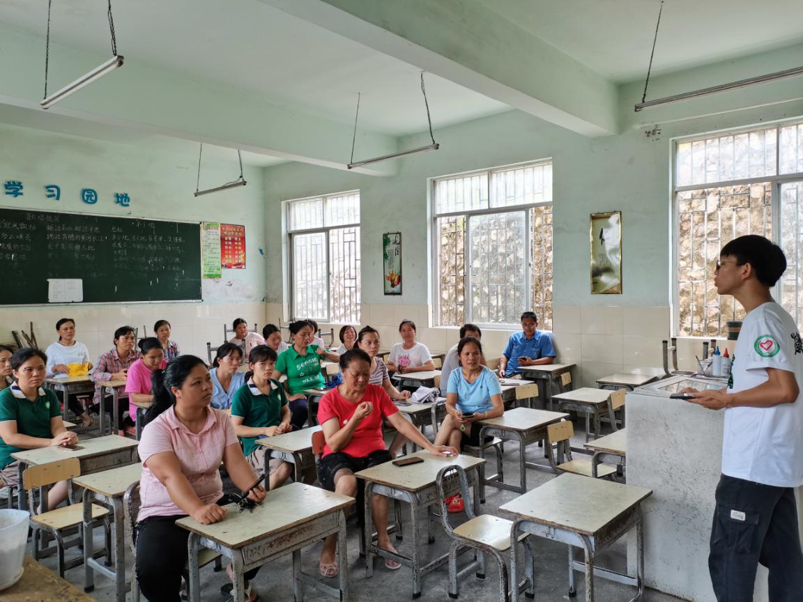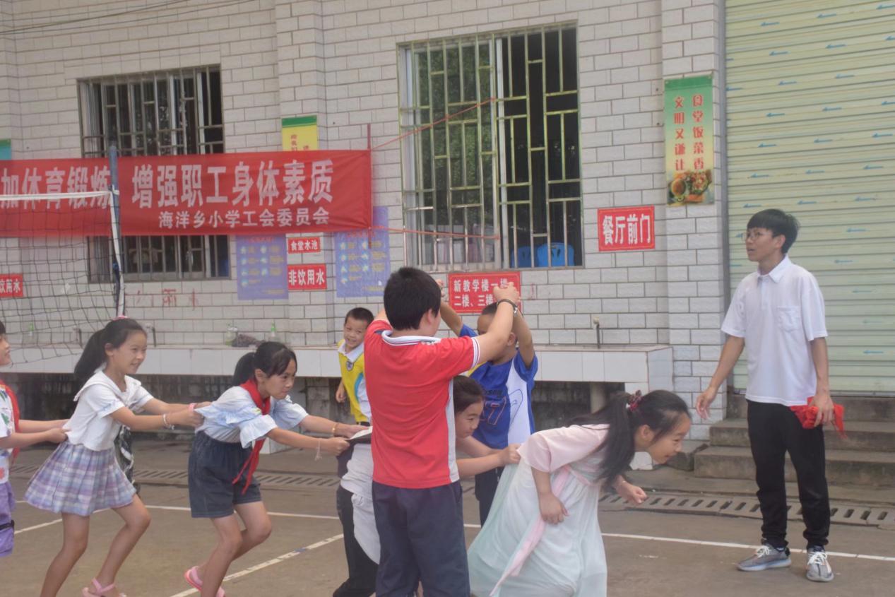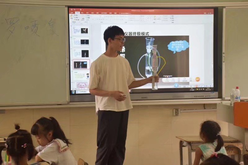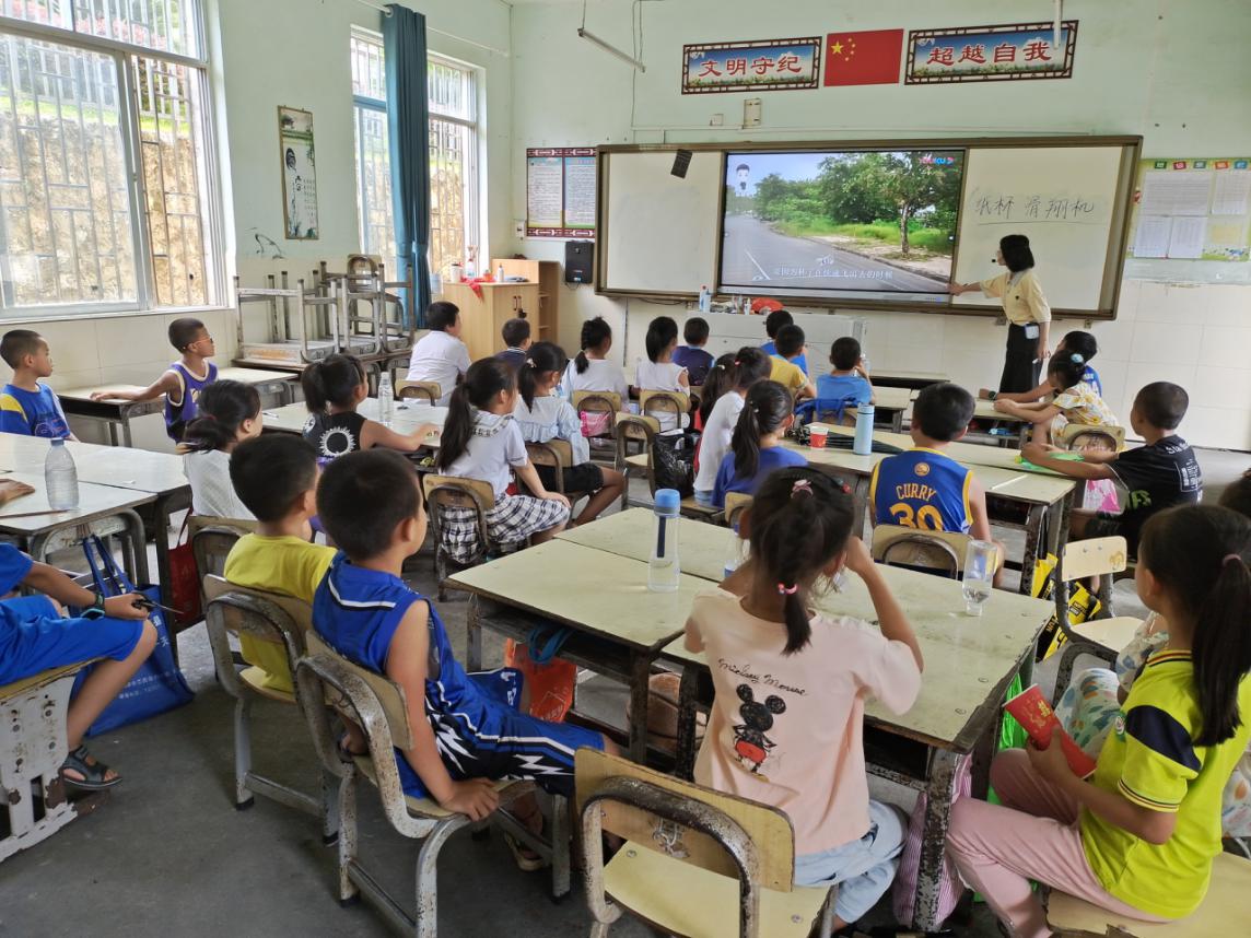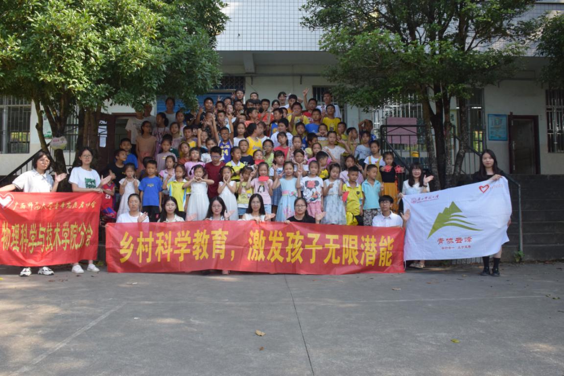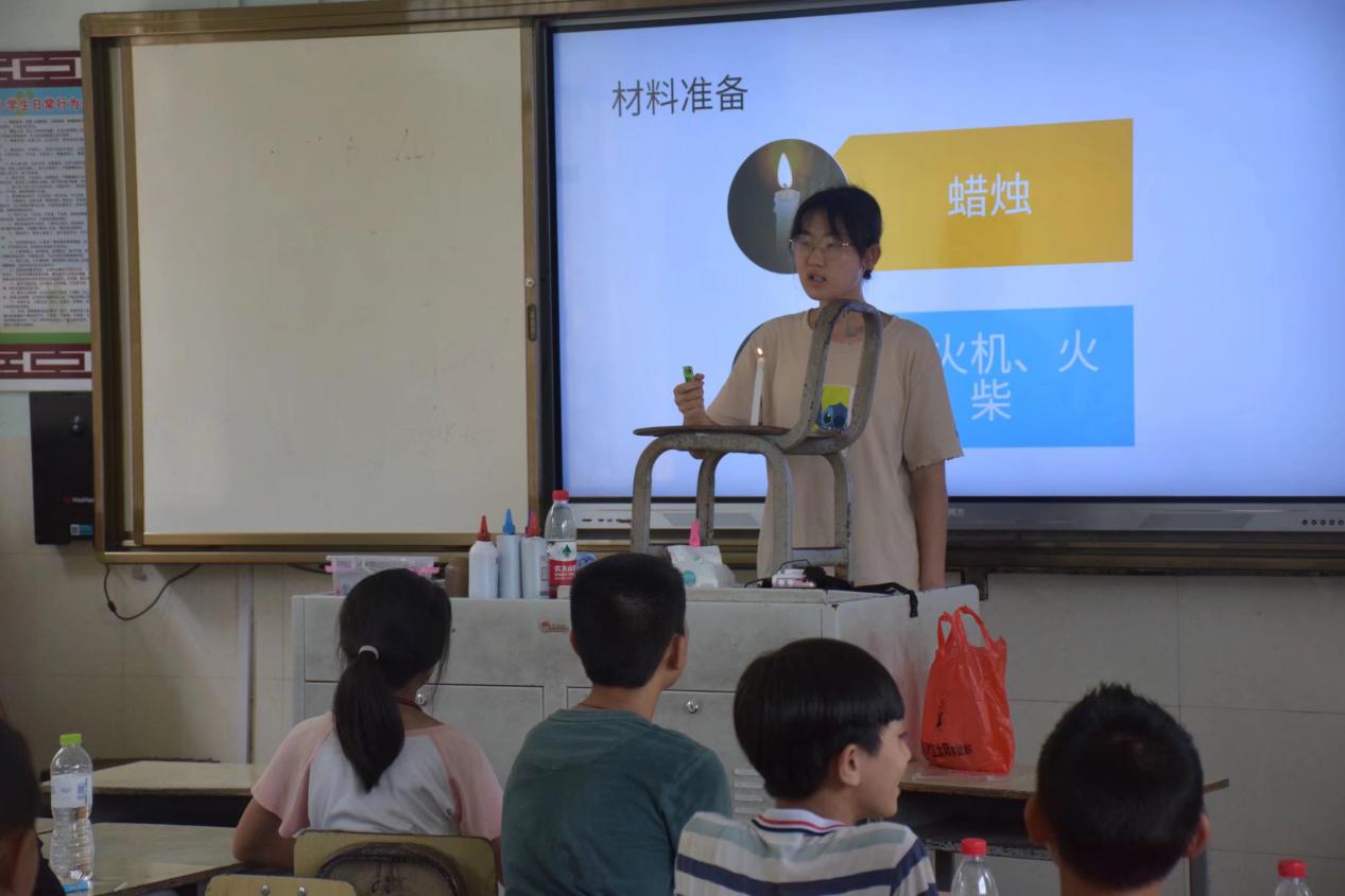 自7月10至7月23日,广西师范大学云峰支教团队前往桂林市灵川县海洋乡的海洋中心校开展“灵川之旅,公益之行”支教活动。在支教过程中,团队开展了实验课、科普课、手工课、英语课等课程,队员们和小朋友们在课堂上进行了一个个有趣而精彩的实验、动手制作一个有一个精美手工,孩子们也通过科普课堂了解更多奇妙的知识。团队携手小朋友们以趣味课堂的方式,共同筑梦乡村教育公益之路。正式开始前,团队与家长进行沟通,向家长介绍支教活动的详细内容及注意事项使家长更放心,更安心。课堂上,队员们事先分发材料,紧接着一步步带领小朋友们进行手工制作,锻炼了小朋友们的动手能力。小朋友们在课堂上认识到中国的剪纸文化的同时,自己也动手体验剪纸的过程,完成自己的作品,也进一步加深的对剪纸的了解。在课堂上,小朋友们通过教具观察到希罗喷泉神奇的实验现象,对其原理有了更深的了解,也进一步激起了小朋友们对科学探究的浓厚兴趣。在点火熄火实验中,通过点燃吹灭后蜡烛产生的白气,让孩子们进一步了解了隔空点火的神奇现象。除了室内的科普课,队员们还会增设户外的活动,小朋友们分组合作参加游戏,既锻炼了身体,也加强了与小组队员的合作能力。在第二天的科普课上,小朋友们不仅在课堂上认识了纸杯滑翔机,还了解了它们的原理及学习了如何制作纸杯滑翔机。另外,团队在美术课上培养小朋友们在“美”方面的能力,在课程上使小朋友们得到全能的发展。
