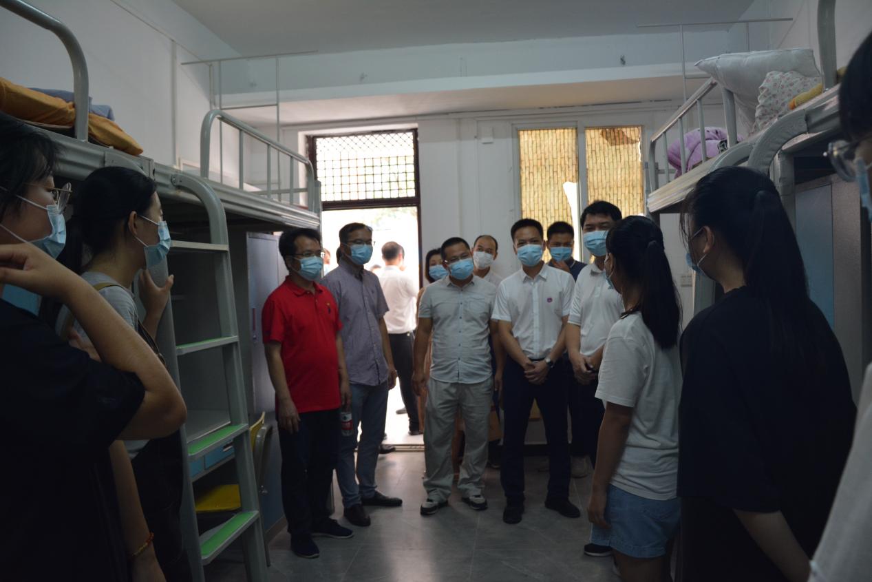校领导到学院报到注册点检查迎新工作,关心学院新生的报到注册情况,亲切慰问迎新工作人员。同时,校领导走访新生宿舍,慰问来自四面八方的新生,询问了解其基本情况,并向新生赠送学校纪念品。