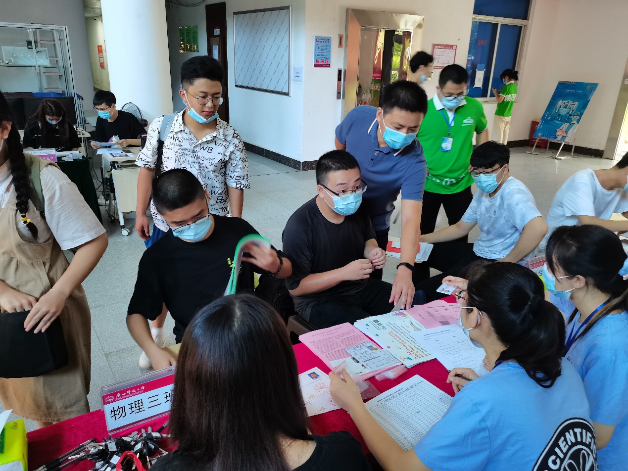迎新首日,学院领导和全体辅导员一直在物理实验楼等候新生的到来,全程组织协调新生接待工作,并与新生们亲切交谈,耐心解答新生们的问题。学院学生会和志愿者们分别在引路组,行李搬运组,材料收集组及宣传报道组同时开展迎新工作。引路组负责引导新生前往注册报道地点,行李搬运组热情周到帮助新生搬运行李,宣传报道组用相机记录迎新工作中温暖美好瞬间并对新生进行采访,材料收集组有条不紊的收取新生材料、核实身份信息、完成报到注册手续办理。