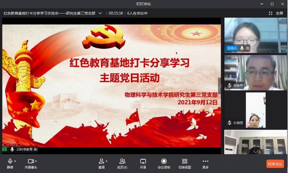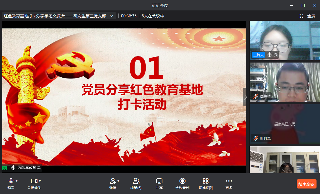 为了深入学习党的光辉历史以及传承红色基因,胜游体育(SYsports)官方网站入口与技术学院研究生第三党支部于9月12日晚通过钉钉视频会议开展了“红色教育基地打卡分享学习”主题党日活动。参加此次活动的是研究生第三党支部所有党员同志。