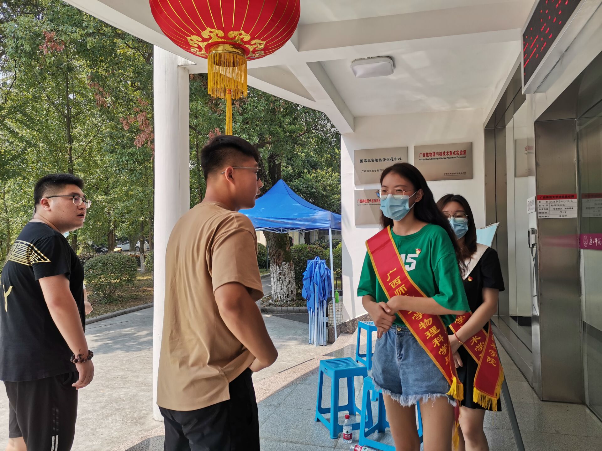 同志们指引新同学报到
