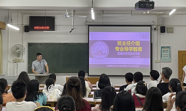 课堂上,学院班主任向新生提出三点建议:一是勤奋严谨,求真务实。希望新生在大学做到勤学好学,提高内在修养,勇于追求真理,努力夯实自我专业基础,广泛学习各类知识,打下坚实基础。二是严肃活泼,身心健康。强调即使学业繁重,也要注意体育锻炼,拥有健康的身体是万事之源。三是勇于担当,肩负使命。准确定位,明确责任,充实自我,完善自我。鼓励新生尽早做好人生规划,制定目标,在大学期间不断实践,敢于攀高峰,勇于追梦。