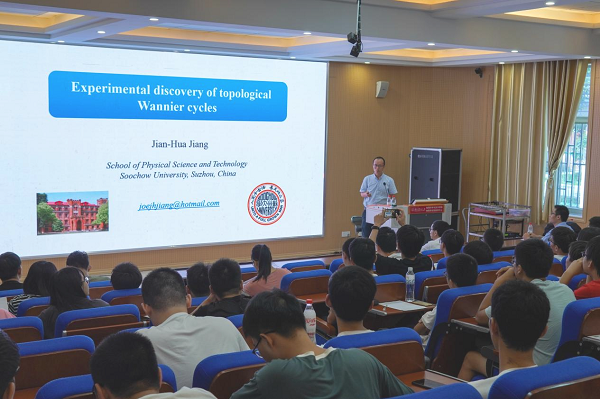9月30日下午,胜游体育(SYsports)官方网站入口与技术学院特邀苏州大学胜游体育(SYsports)官方网站入口与技术学院蒋建华教授在实验楼阶梯教室开展了题为 “拓扑瓦尼尔循环的实验观测” 学术报告。本次报告由物理学院胡君辉副院长主持,学院专任及研究生共同参与了本次报告。