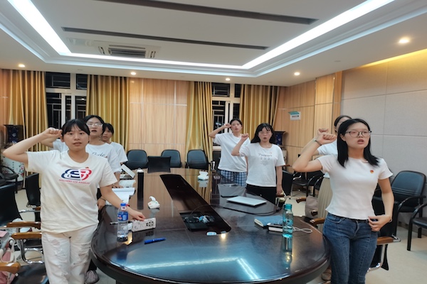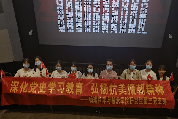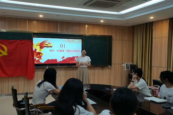 首先,全体党员同志一起观看了爱国主义教育影片《长津湖》。电影《长津湖》以抗美援朝战争第二次战役中的长津湖战役为背景,讲述了71年前,中国人民志愿军赴朝作战,在极寒严酷的环境条件下,作战部队凭着钢铁意志一路追击,奋勇杀敌,扭转了战场态势的一段波澜壮阔的历史。观影结束后,党员同志纷纷表示自己多次热泪盈眶,很受触动与激励。接着,在“集中分享观影心得体会”环节,每位党员都发表了自己的观影感想。刘阳同志落脚到自身的专业,发出号召,表明作为未来的科技教育工作者,要坚守自己的岗位,为国家培养未来的科学家,为提升全民的科学素养贡献一份自己的力量的决心。吴叶同志更是几度哽咽,中国人民保家卫国的决心和意志是不低估的,无论是在什么样的环境下,只要敌人妄想欺负我们,中国人民绝不允许。谢小捷同志动情地说:“我所认为的英雄,不仅是雷公说的能杀二十个敌人的人,不仅是毛岸英说的上了战场的人,还包括那些具有爱国情怀,并为保家卫国付出行动的所有人。”随后,全体党员共同学习了习近平总书记在中央党校(国家行政学院)中青年干部培训班开班仪式上发表的重要讲话。大家纷纷表示,一定要以习近平总书记重要讲话精神为指引,练好内功,提升修养,努力成为可堪大用、能担重任的栋梁之才,不辜负党和人民期望和重托。最后,全体党员同志重温了入党誓词。