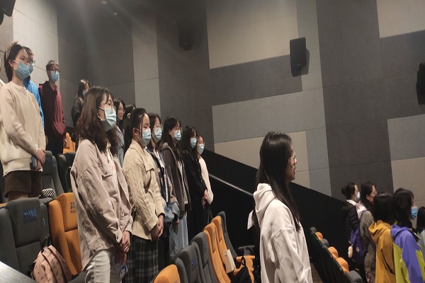 观影结束后,学院本科生第三党支部书记主持重温入党誓词。全体学生党员面向党旗肃立,庄严举起右手,满腔热忱重温入党誓词。在整个爱国情感热烈的氛围中,在场学生党员合唱红歌《没有共产党,就没有新中国》。一代人有一代人的使命,一代人有一代人的担当,新时代这一辈人要铭记历史,传承革命先辈不怕牺牲的抗战精神,敢于奉献的担当精神,高度的社会责任感,努力践行全心全意为人民服务的宗旨。