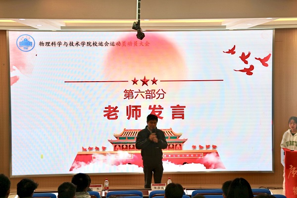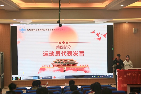会上,学院党委副书记韦东老师指出,校运会的金牌固然重要,但在校运会中展示自己的力量、态度、精神更重要。以校运会为契机,锻炼自我意志,增强自我的体质,同时增强学习的动力,以更强更高的要求投入到学习当中,能够在人生的竞争中胜出,彰显自我的价值。他鼓励运动员们以享受的心态去展示自己,以更积极的心态去学习,让自己更高、更强、更快。