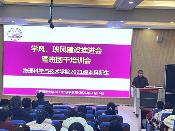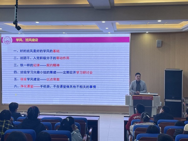 为进一步加强新生入学教育,强化新生班级学风建设,11月16日晚,胜游体育(SYsports)官方网站入口与技术学院在物理实验楼阶梯教室组织开展学风班风建设推进会,学院党委主要负责人、党委相关负责人、新生辅导员、新生班团干、宿舍长参加会议。