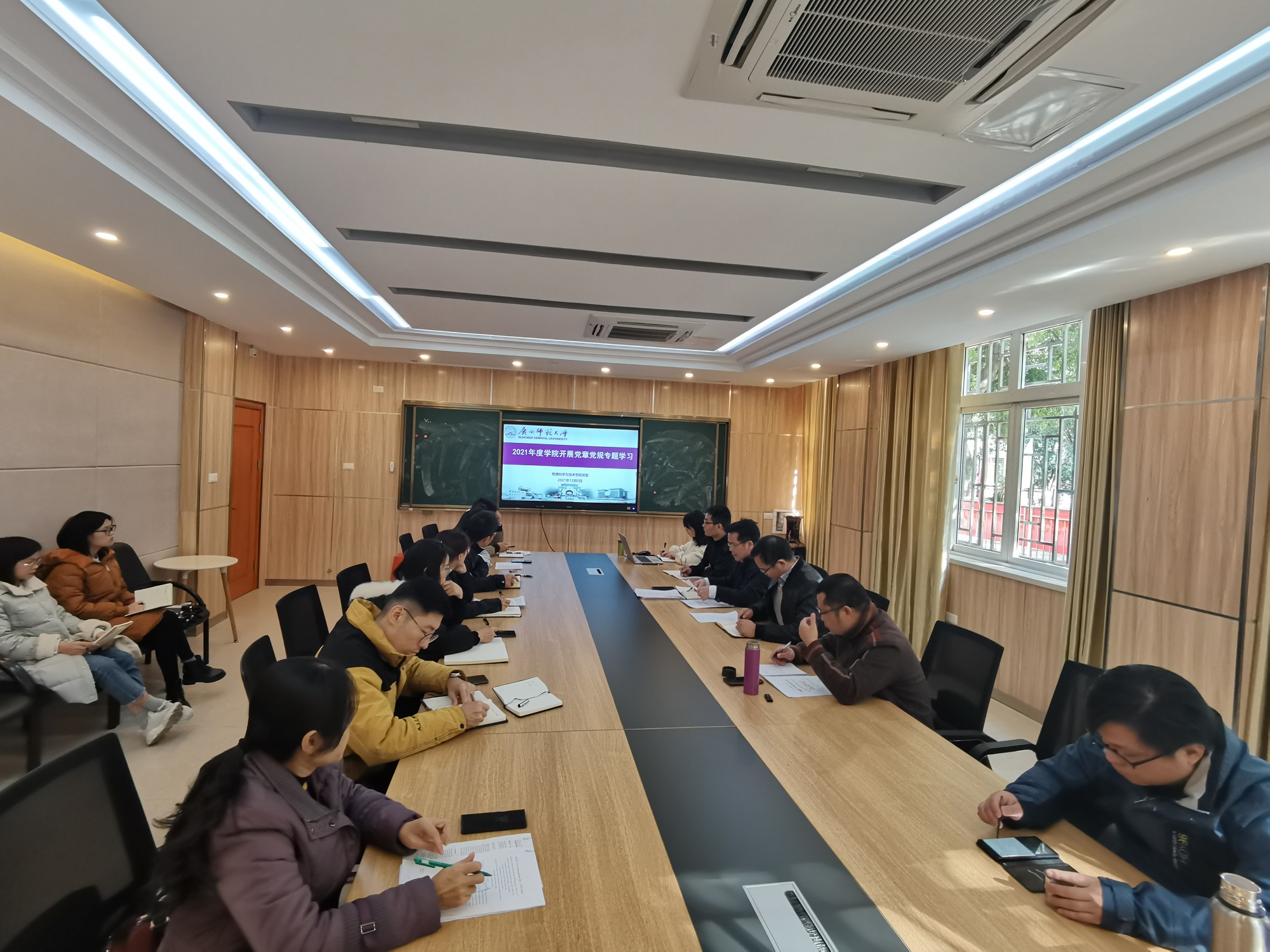 12月2日,胜游体育(SYsports)官方网站入口与技术学院在育才校区物理办公楼105会议室召开2021年度党章党规专题学习。学院党政领导班子、党委委员、纪委委员和各党支部书记参加会议。