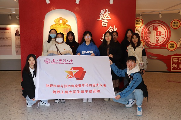 廉洁政治教育是党的政治建设、作风建设的重要内容,对培养“有理想、有道德、有文化、有纪律”的“四有”青年具有重要意义。反对腐败、建设廉洁政治,是马克思主义政党的政治本色,历史是最好的教科书,将党史学习教育和廉洁教育结合起来,从百年党史中汲取精神养分,把伟大建党精神落实到实际工作中,此次实践教学为青年马克思主义者完善自我提供精神指引。通过此次实践学习,青马班学员与回顾党的百年峥嵘岁月,感悟伟大建党精神和光荣革命传统,践行“学史明理、学史增信、学史崇德、学史力行”,坚定做“青年友”的信念,增强做青年马克思主义传播者的信心。从青年中来到青年中去是青马人的使命,加强自我教育,增强政治素养,提升思想境界,锤炼作风品格,物理学院青马人始终坚持不忘初心,砥砺前行,在青春奋斗中厚植家国情怀,做志向远大的青年马克思主义者。