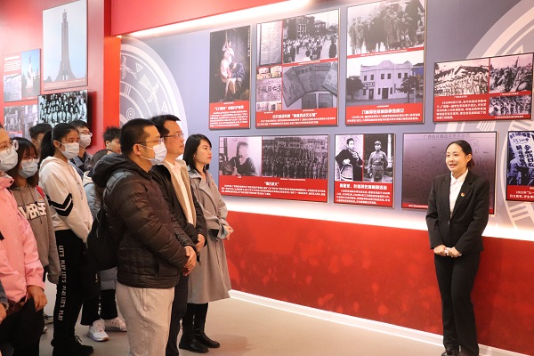 在中国共产党简史展厅,讲解员从新民主主义革命时期、社会主义革命和建设时期、改革开放时期和社会主义现代化建设新时期这四个重要历史时期进行讲解,梳理历史脉络,重温红色历史,汲取革命力量。参观过程中,学员们不时驻足观看,提出自己的疑问和见解。在中国共产党百年华诞的重大时刻,广大青年马克思主义骨干加强党史学习教育,在中国共产党的百年奋斗历程中感悟中国共产党人的革命精神,勇当历史使命,坚定中国特色社会主义远大信念和共产主义远大理想。在党旗下,党委书记黄万华带领青马班党员重温入党誓词,告诫青年学子端正入党动机、坚持理论学习、坚定理想信念,不仅要在行动上入党,更要在思想上入党。