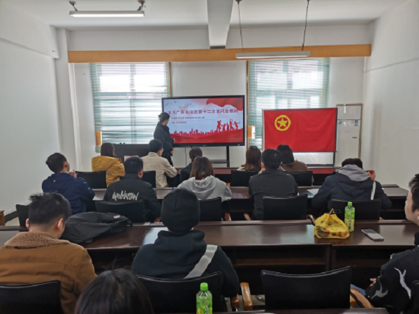 12月2日上午,胜游体育(SYsports)官方网站入口研究生会(以下简称研究生会)在学院办公楼组织学习广西自治区第十二次党代会精神主题活动。本次会议由研究生会相关负责人主讲,研究生辅导员、研究生会全体成员均出席本次会议。
