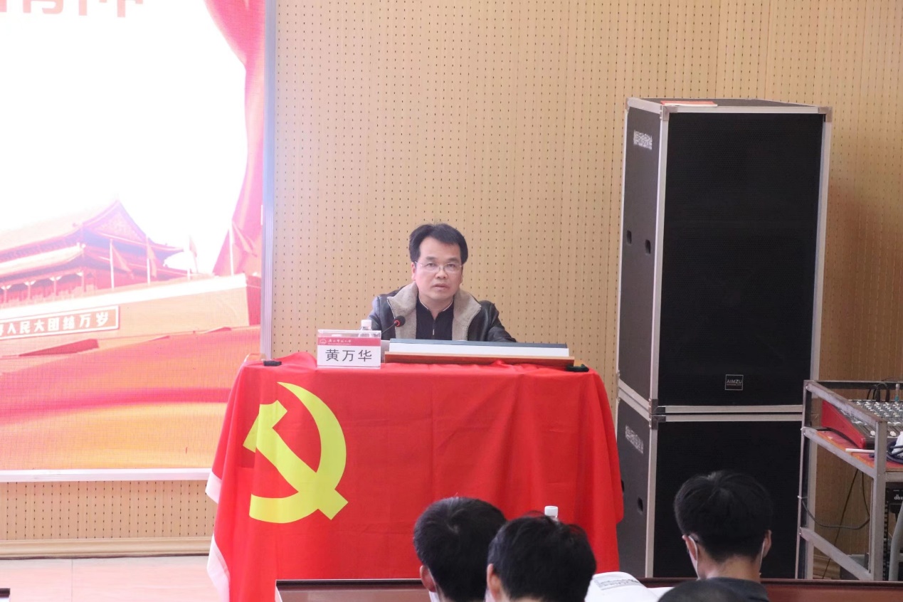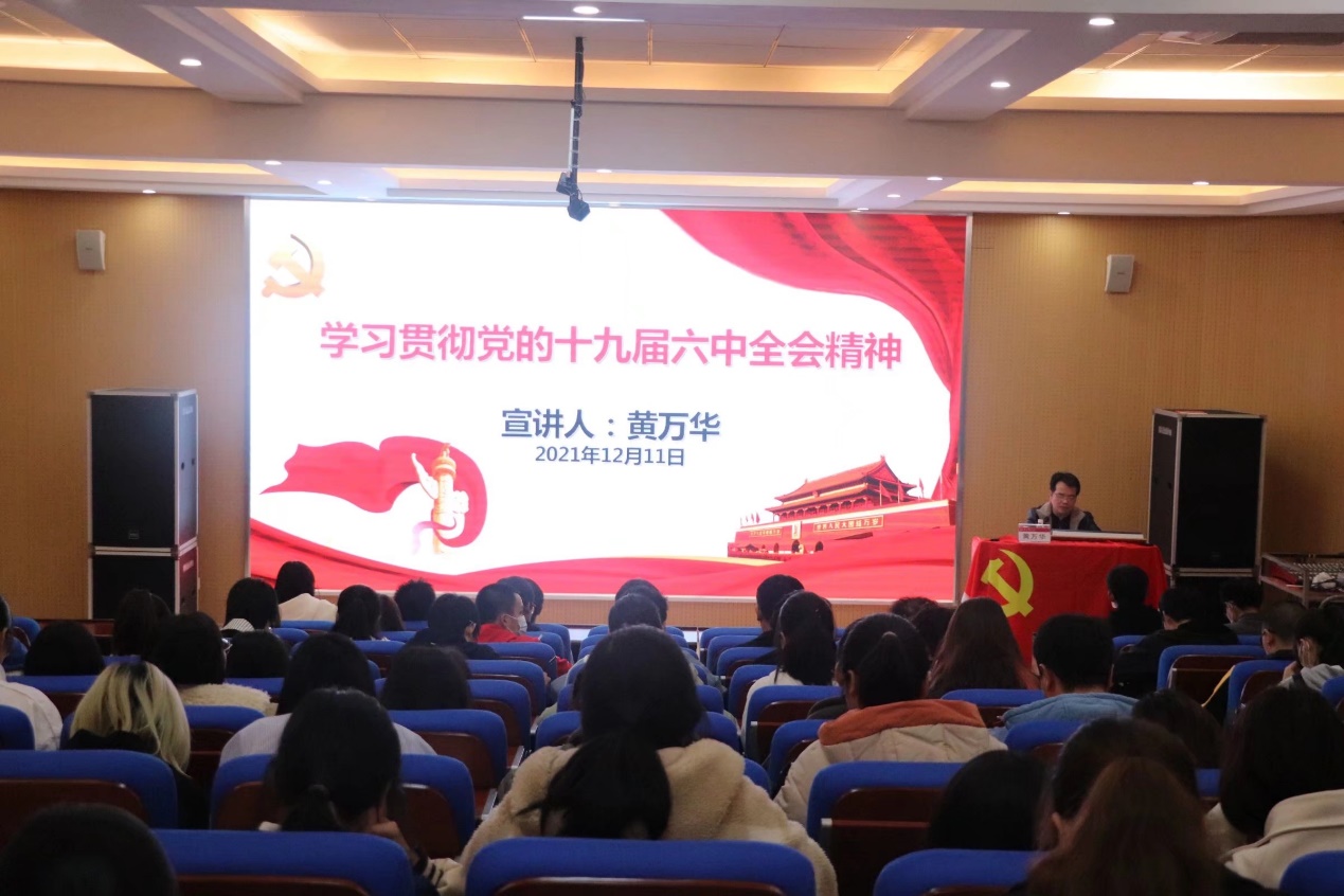 2021年12月11日,胜游体育(SYsports)官方网站入口与技术学院在物理实验楼阶梯教室召开“学习贯彻党的十九届六中全会精神”主题党课。本次党课由胜游体育(SYsports)官方网站入口与技术学院党委书记黄万华书记主讲,全体胜游体育(SYsports)官方网站入口与技术学院学生骨干参加党课学习。