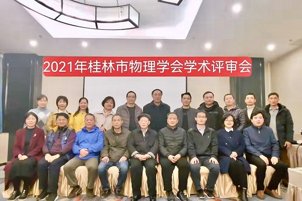 2021年12月15日下午,桂林市物理学会学术评审会在桂林碧玉大酒店顺利召开。本次会议由桂林市物理学会理事长杨永栩教授、名誉理事长柳继锋教授共同主持,副理事长胡君辉教授,副理事长李劝书记、骆少峰老师、秘书长张殷副教授、副秘书长李涛老师、副秘书长马利芳教研员等21位理事参加会议。