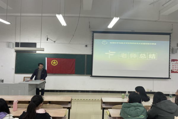 主持人首先介绍活动的流程以及出席的嘉宾。接下来,四位来自不同专业方向的研究生代表们分别从考前准备,心态,技巧等方面,结合自身备考经历进行了经验分享。来自科学与技术教育专业的周佳乐强调健康身体的重要性,鼓励大家加强锻炼、保持平和心态;来自物理学专业的陈定雄、学科物理的文艺臻和系统科学的王万林分享获取院校信息的途径和方法,详细介绍如何在考研过程中备战英语、政治、专业科目,鼓励师弟师妹们持之以恒,科学规划时间,并预祝每位考研的学生成功上岸。