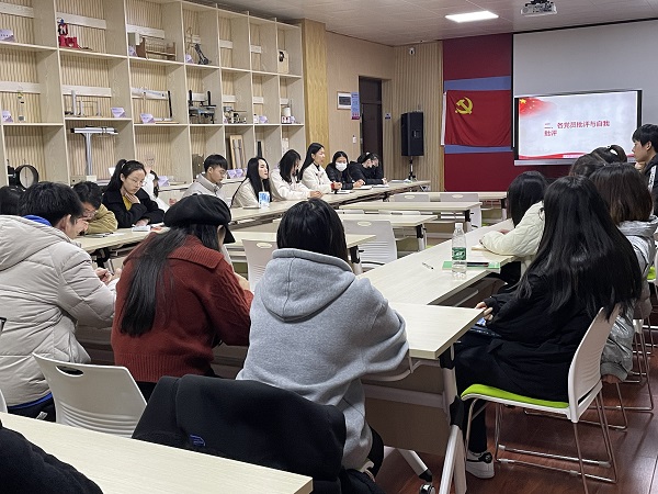 支部书记对2021年下半年工作进行了汇报,主要回顾了支部活动及支委的相关工作,结合支部情况列举了多举措落实党员材料规范化、党史学习教育常态化、党建宣传实效化、支部管理制度化等的事例。除此之外,指出了工作中出现的问题和原因,并明确相应的努力方向。随后,党支部进行批评和自我批评,同志们就自身、他人问题进行了详细的剖析,并能较全面地认识到不足并努力改进。最后,同志们根据本支部实际情况,就加强学习党史、完善支部组织建设展等内容展开深刻讨论。